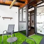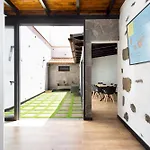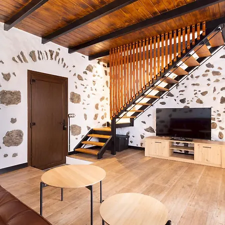 Home2Book Rustic Stone Haven With Terrace距离charco Verde3.5公里,设有3间庭院景的卧室。